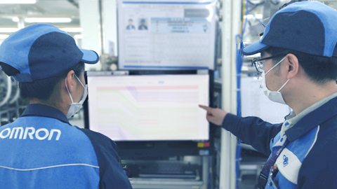 使用欧姆龙控制产品构成的各种要素作业低成本简便自动化设备,有焊接机、拧螺丝机、插入机、标签打印粘贴、印字检查等等。从品质角度消除人员作业的波动,同时辅以数据收集等信息化系统实现品质要点的追溯。通过IE改善的循环,不断提高作业生产效率。