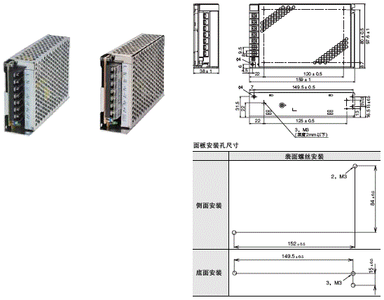 注:当使用底盘上提供的螺丝孔时, 螺丝在电源内部的深度必须在2mm以下。