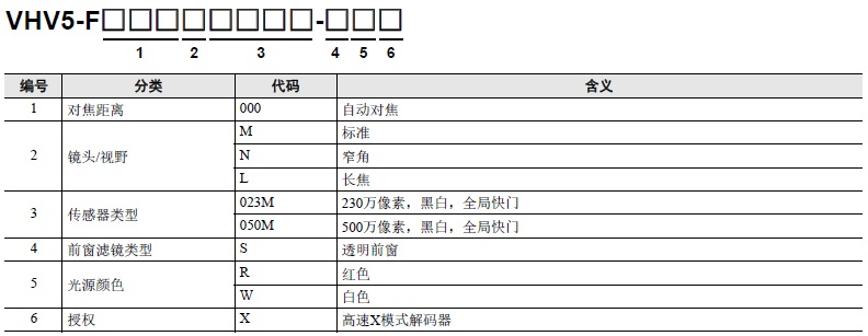 500万像素 | 标准 | 有 | VHV5-F000M050M-SRX | |