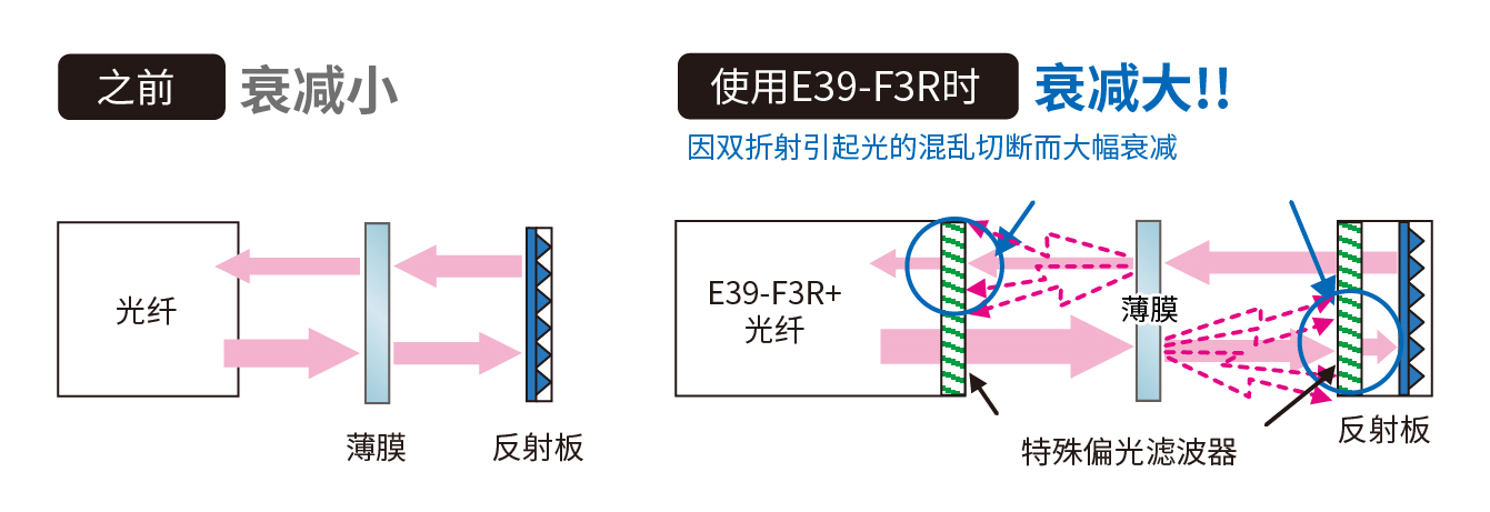 E32-LR11NP内置MSR偏极滤光镜,结合专用反光板协同工作,有效抑制由双折射材料产生的偏振干扰,从而稳定识别此类特殊材料,防止透明注塑横栏造成的误检测现象。