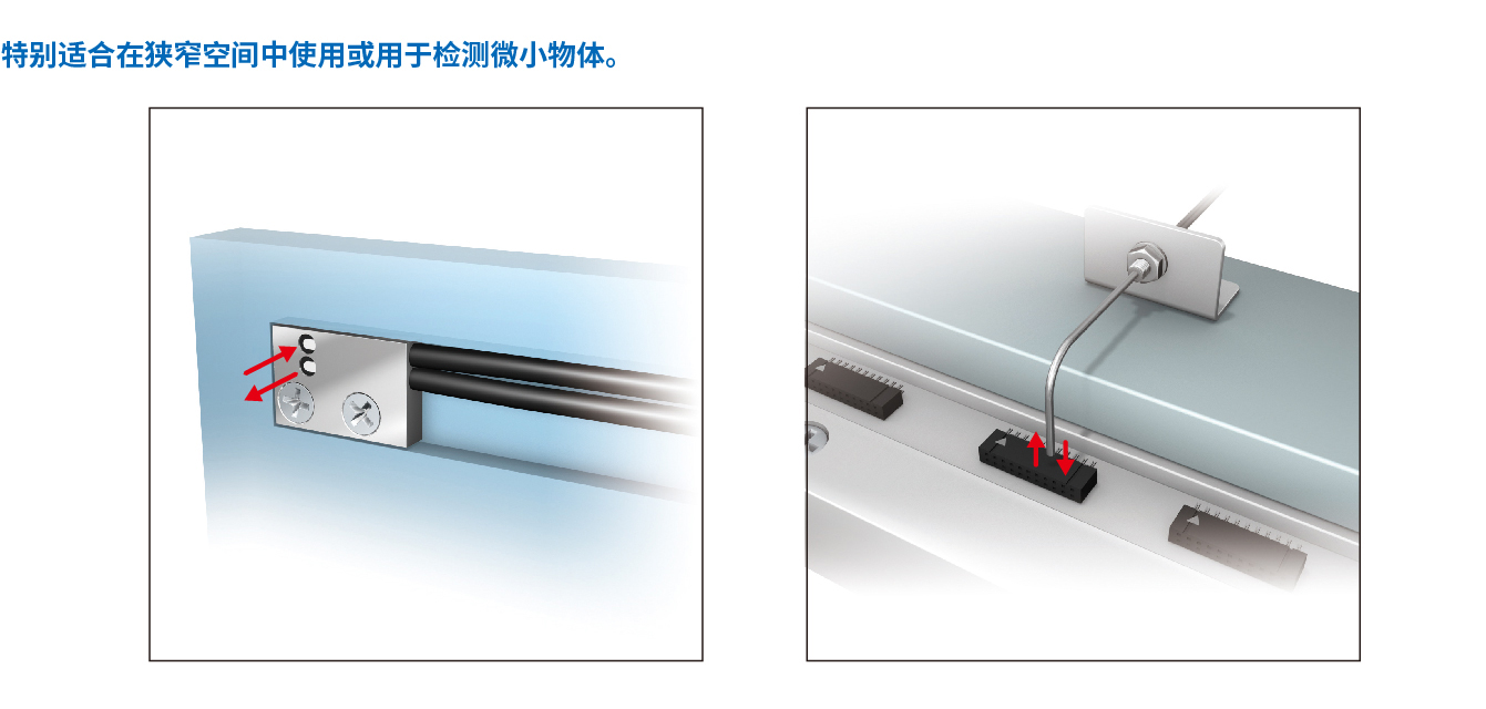 光纤单元E32-D24R采用微型化设计,其紧凑结构支持嵌入式安装方案,能够有效应对基板输送轨道的空间约束。