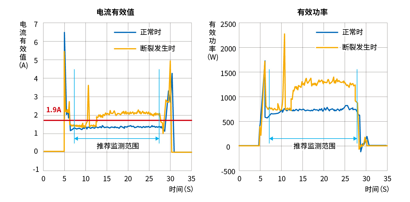 K7DD通过电流有效值徒增和有效功率超限的双重验证,对钻头进行早期断裂监测,实现极高可靠性的断裂识别。