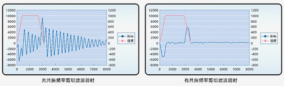 穿梭车运行中的平顺性(振动大),对货架的平整度和牢固度提出了很高的要求,因此欧姆龙通过S型加减速曲线设定、共振频率剪切滤波器等功能的附加,在机械结构不更改、运动时间不变的条件下,对振动进行了有效抑制,实现安全运输防掉落。