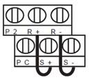 ①使用RS485通信时,在变频器的外部把R+和S+端子短接,R-和S-端子短接,如下图所示: