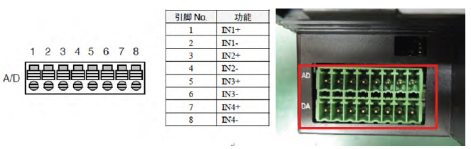 b.CPM1A-AD 扩展模拟量输入模块通过端子切换输入电压或电流。