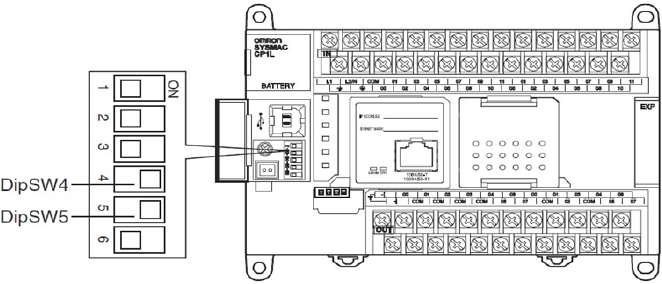 (2)当CIF41 模块安装在第二个扩展口时,将CP1H 上的5 号DIP 开关置ON。