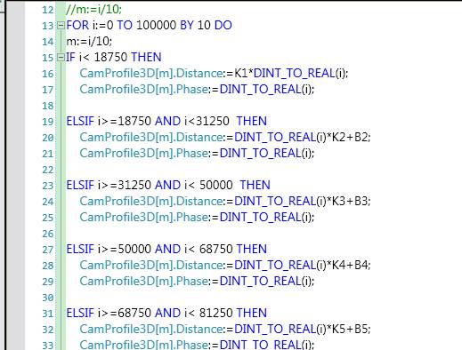包封配组机关键是压痕及切割刀轴和牵引轴的线速度同步,这就要用到电子凸轮功能,但是电子凸轮表随着袋长的改变而改变,因此,我们必须根据袋长值来计算电子凸轮。