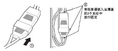 如果金属护罩不能固定,说明连接器没有完全插入。请再一次插入连接器。